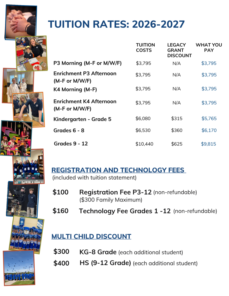The annual tuition at St. Mary’s Springs Academy is an investment in both your family and Catholic education in the Fond du Lac region. Tuition cost includes most fees, including registration fee. Your tuition helps to provide the resources that directly affect your students, including highly qualified faculty, curriculum, technology, classroom supplies, and much more!