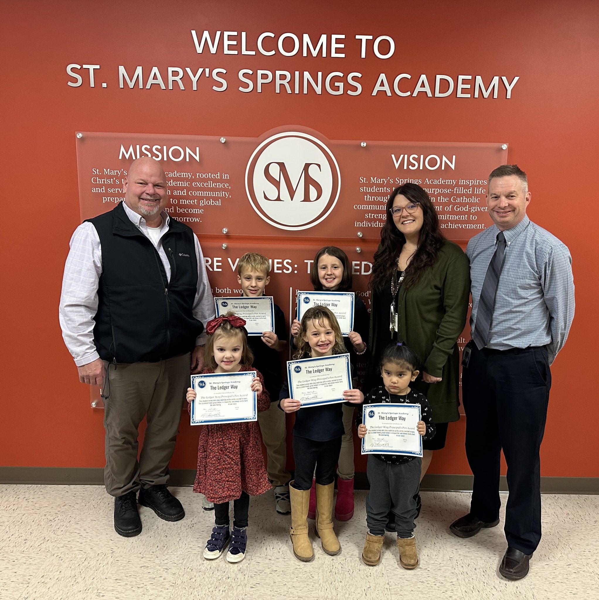 The Principal’s Pen is an opportunity for teachers to recognize students who consistently demonstrate “The Ledger Way” with a focus on faith, learning, respect for leadership, community and responsibility. The students chosen will attend a special breakfast with Mr. Kelnhofer, Mr. Thuerwachter and a special guest. They will also receive a certificate with a brief sentence on how they followed “The Ledger Way,” and a principal’s pen. This week’s special guest speaker is Ashley Lane at SMSA, who is our Donor and Alumni Assistant Director.