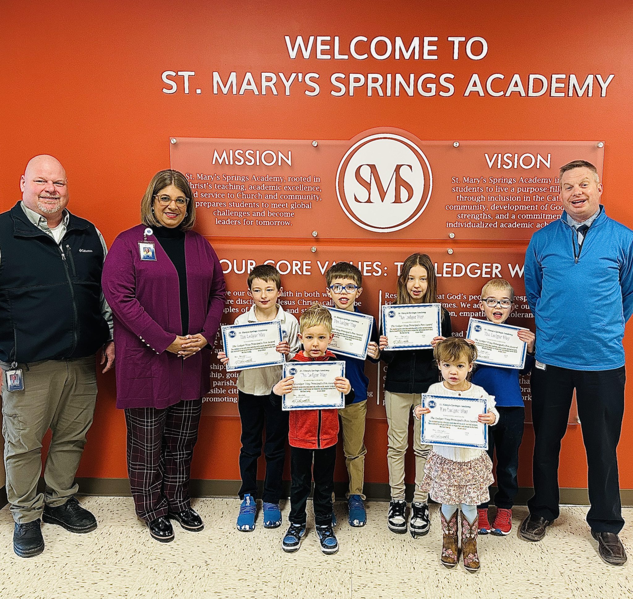 The Principal’s Pen is an opportunity for teachers to recognize students who consistently demonstrate “The Ledger Way” with a focus on faith, learning, respect for leadership, community and responsibility. The students chosen will attend a special breakfast with Mr. Kelnhofer, Mr. Thuerwachter and a special guest. They will also receive a certificate with a brief sentence on how they followed “The Ledger Way,” and a principal’s pen. This week’s special guest speaker is Stacey Akey, System President.