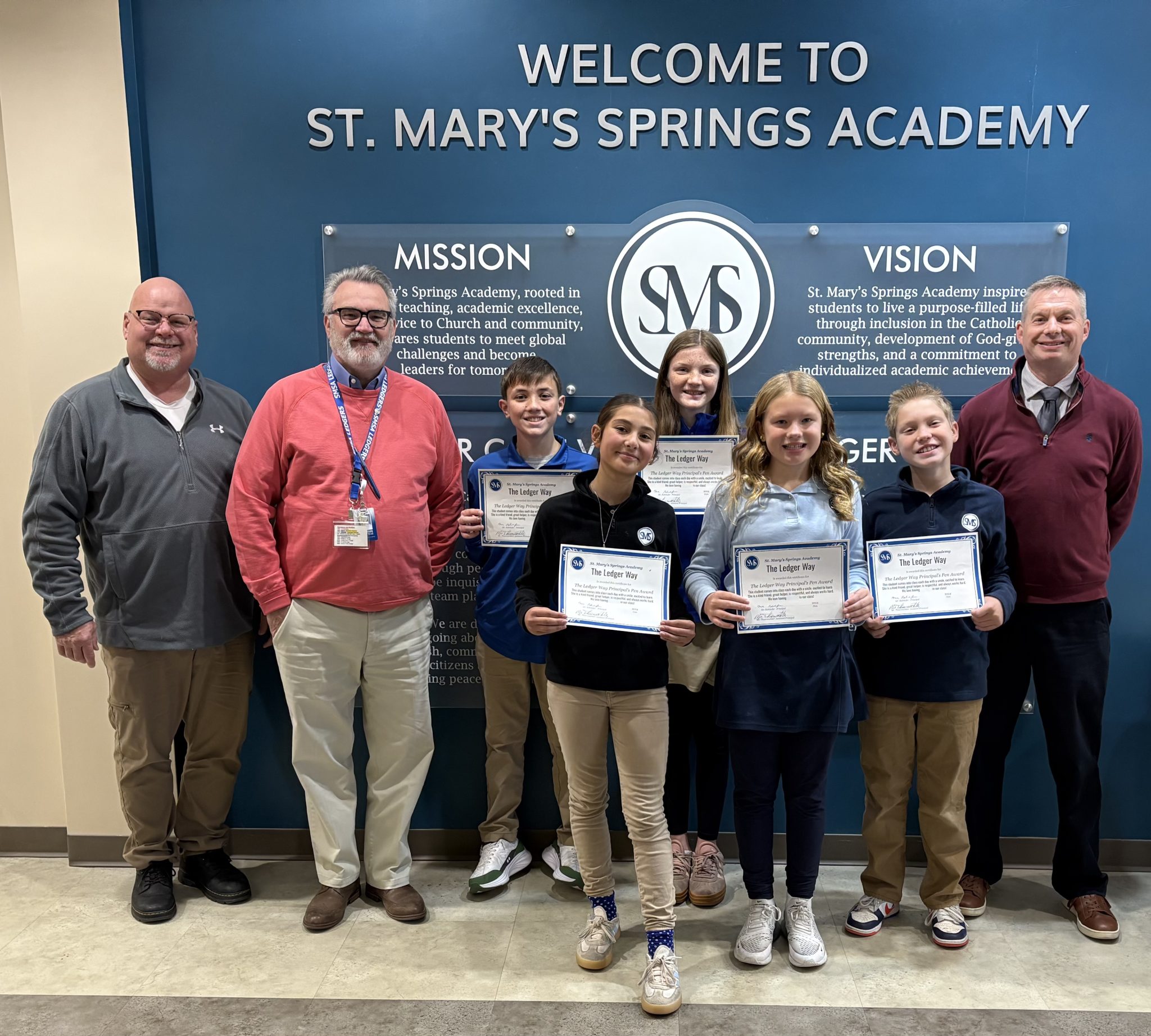 The Principal’s Pen is an opportunity for teachers to recognize students who consistently demonstrate “The Ledger Way” with a focus on faith, learning, respect for leadership, community and responsibility. The students chosen will attend a special breakfast with Mr. Kelnhofer, Mr. Thuerwachter and a special guest. They will also receive a certificate with a brief sentence on how they followed “The Ledger Way,” and a principal’s pen. This week’s special guest speaker is Mr. Eamonn O’Keeffe, High School Administrator.