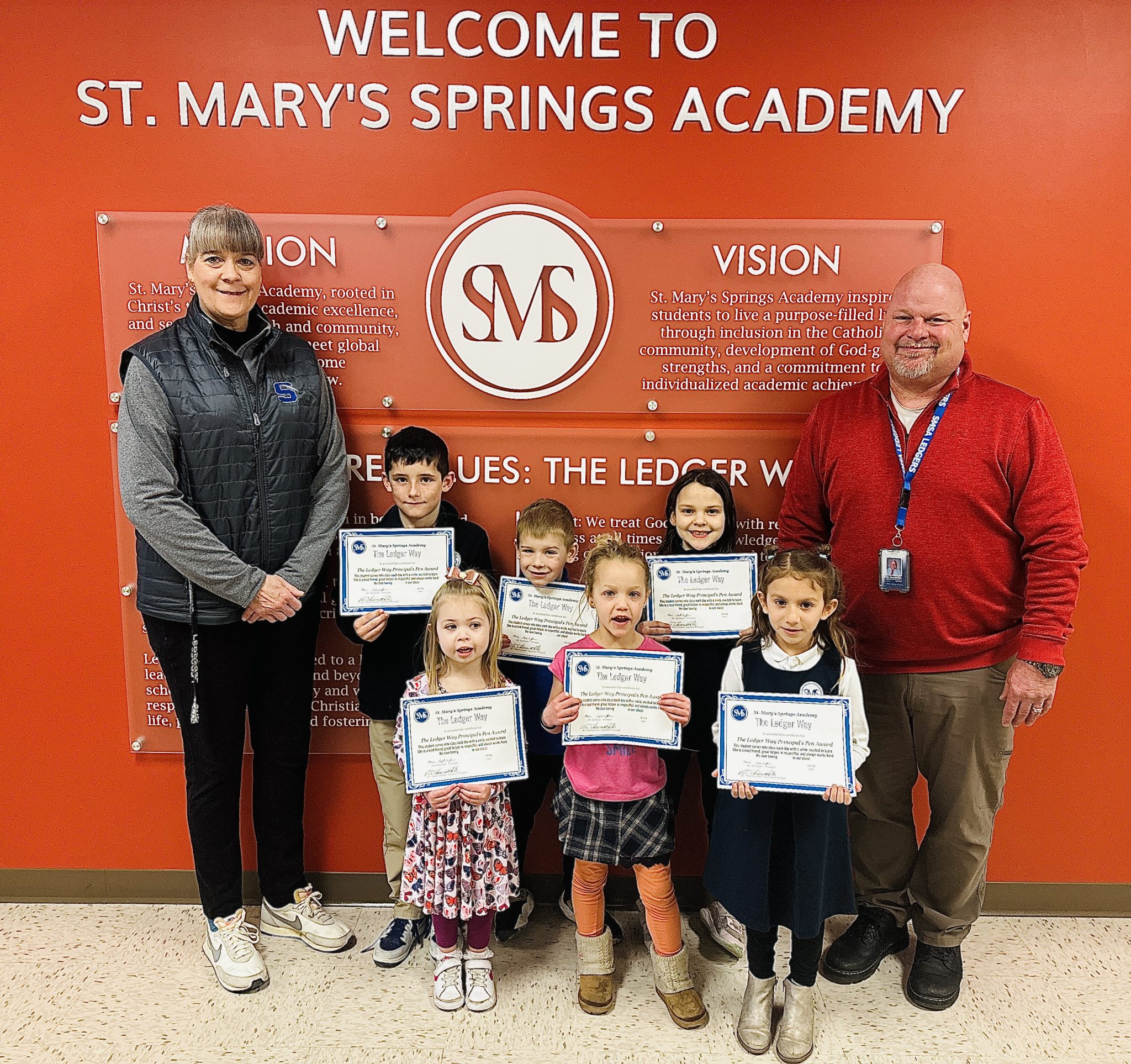The Principal’s Pen is an opportunity for teachers to recognize students who consistently demonstrate “The Ledger Way” with a focus on faith, learning, respect for leadership, community and responsibility. The students chosen will attend a special breakfast with Mr. Kelnhofer, Mr. Thuerwachter and a special guest. They will also receive a certificate with a brief sentence on how they followed “The Ledger Way,” and a principal’s pen. This week’s special guest speaker is Kelly Mueller, Athletic Administrator.