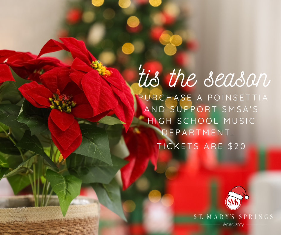 The HS Music Department is having their annual poinsettia sale. You can purchase tickets in the North Hall Office or from high school music students who are participating in the sale. Tickets are $20 and are being sold thru 12/12/25. Once you purchase a ticket, you take it to Haentze’s Floral to pick out your beautiful red poinsettia. Thank you for supporting the HS Music students.