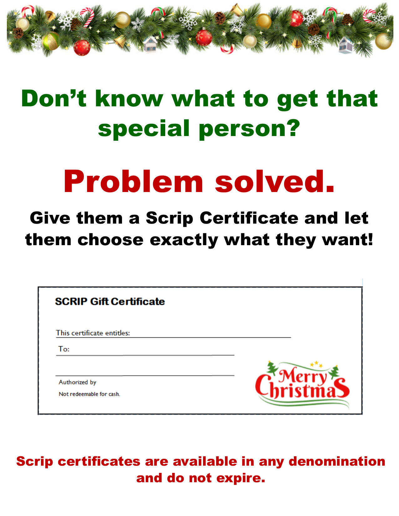 All uniform and spirit wear pieces that your child outgrows, throughout the school year, can be dropped off at the North, South or Scrip office during regular business hours.
