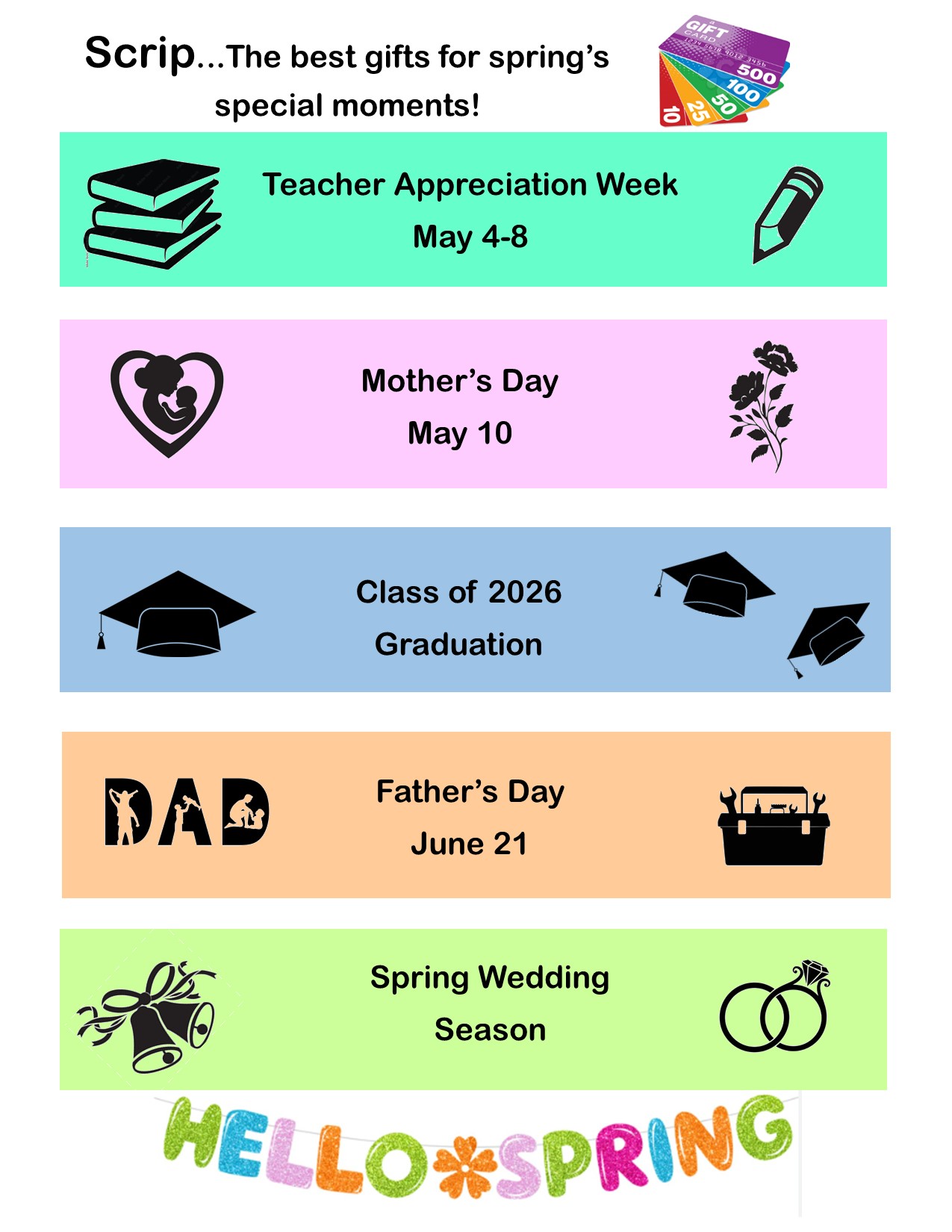 Planning is well underway for our SMSA Staff Appreciation Week, May 4 -8, 2026 and we are in need of our SMSA Families help! We will once again be having a special staff luncheon during this week to show our appreciation for our amazing SMSA Staff. We are looking for families to contribute monetarily towards this meal and other items for the week. If you would like to help with this, you can either send cash/check (payable to Andrea Nuss) in a sealed envelope with Staff Appreciation/Andrea Nuss on it or Venmo @Jeff-Nuss-3 (4355 – last four digits). All contributions will be due by Friday, May 1st. If you have any questions, please email Andrea Nuss, alnuss@charter.net. Please watch for more details in the eLedger regarding Staff Appreciation Week at the end of April. Thank you so much for your help in making this week extra special for our SMSA Staff!