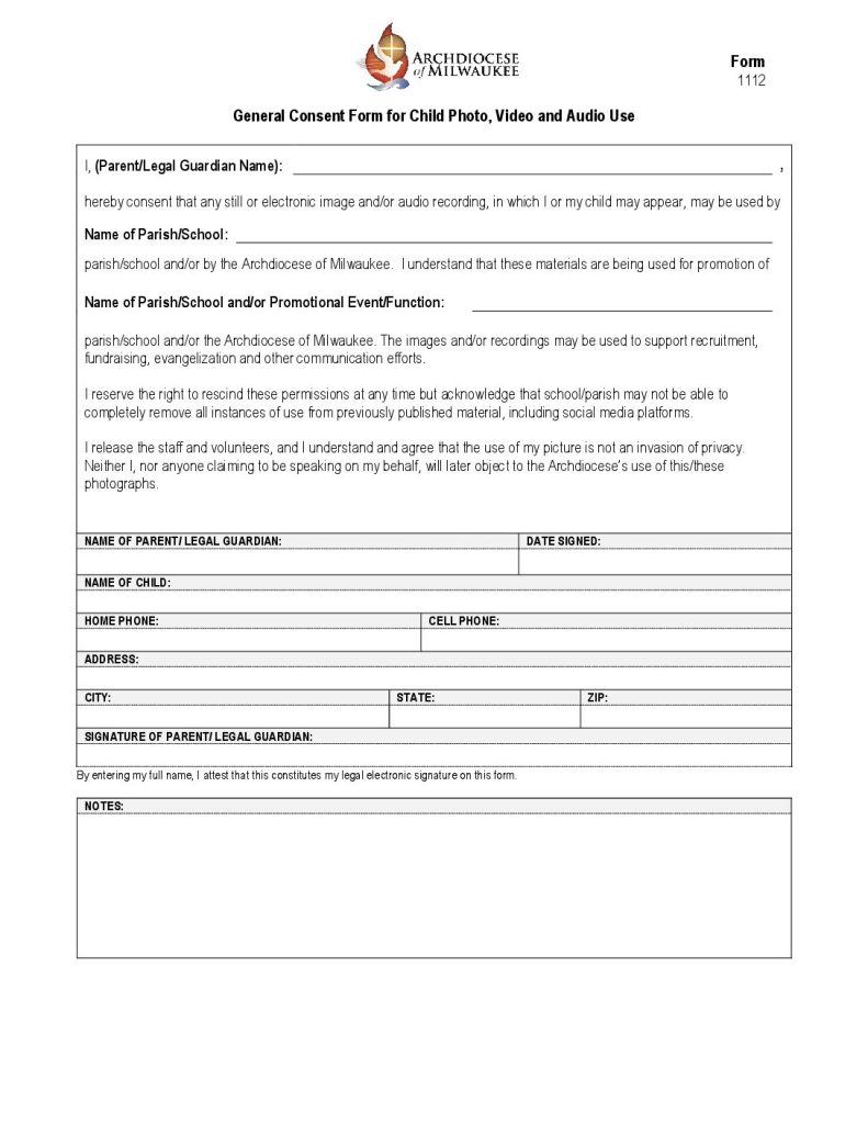 1112 General Consent Form for Child Photo, Video and Audio Use